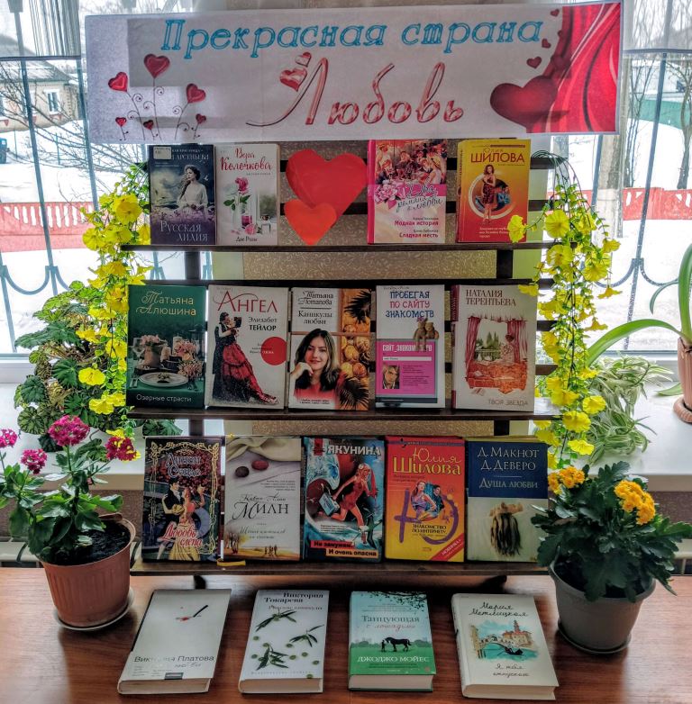 В честь Дня Святого Валентина Васильевская сельская библиотека оформила книжную выставку «Прекрасная страна Любовь!», где вниманию читателей представлены романы русских и зарубежных авторов, пишущих о любви. Эти книги – настоящие сокровищницы историй о чувствах, которые волнуют сердце, заставляют сопереживать героям