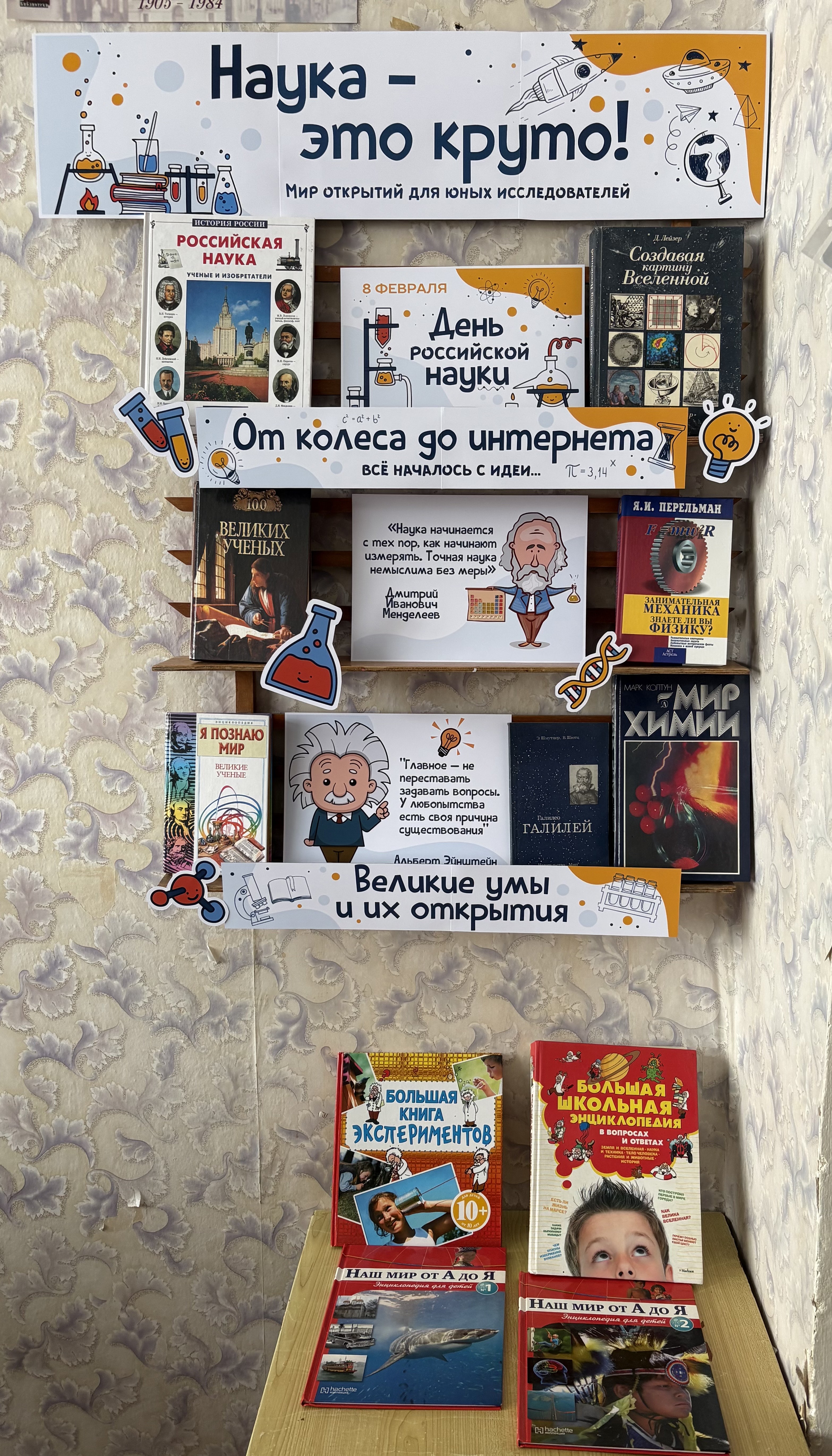 В Марьино-Николаевской сельской библиотеке оформлена выставка-познание «Наука – это круто». На ней представлены книги, популяризирующие отечественные научные достижения, историю Академии наук и труды великих ученых, а также современная научно-популярная литература.