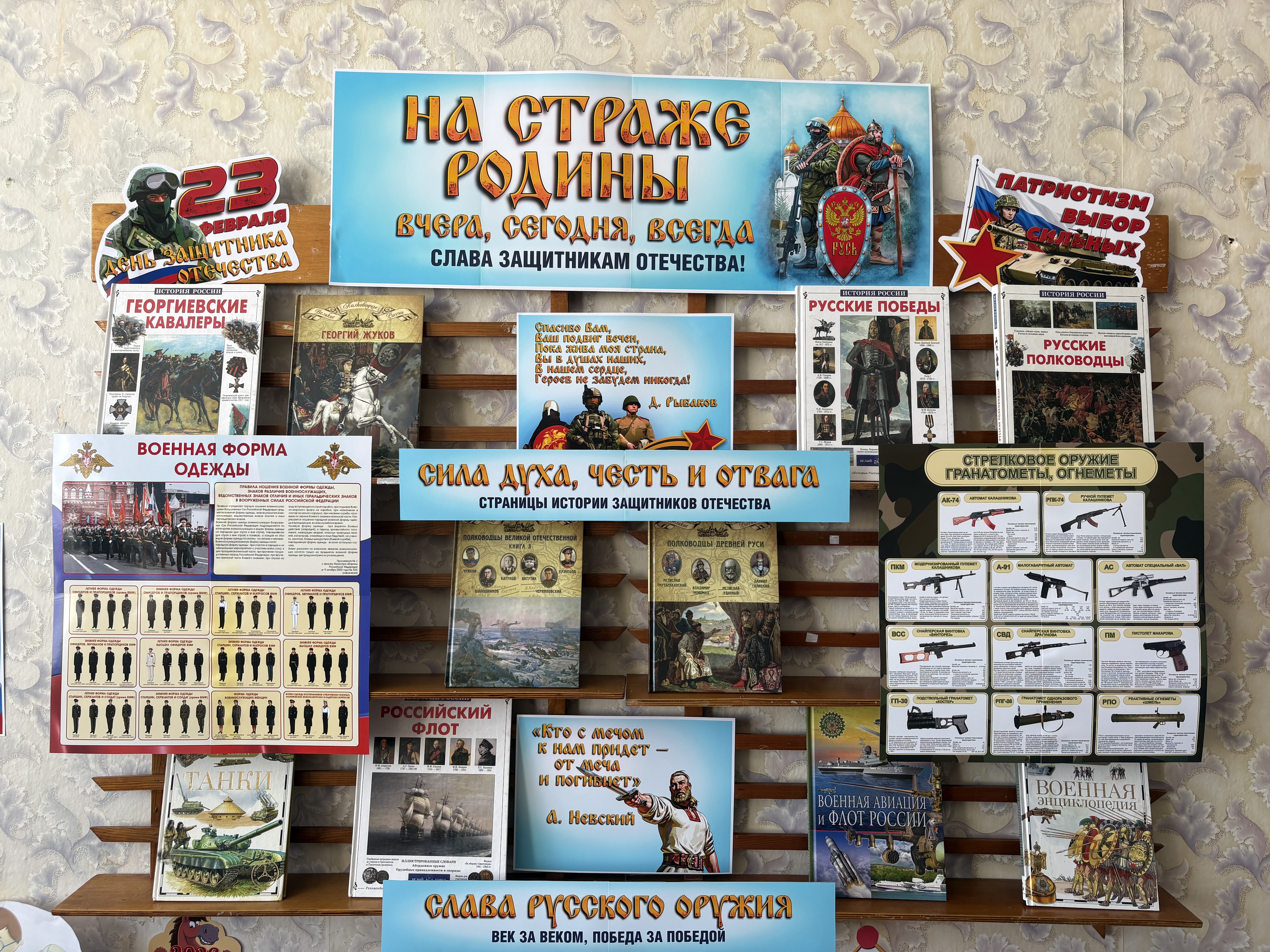 В Марьино-Николаевской сельской библиотеке оформлена книжно-документальная выставка «На страже Родины. Вчера, сегодня, всегда». На выставке представлены книги, которые помогут совершить исторический экскурс в героическое прошлое нашей страны, узнать о славных победах российских войск, которые сыграли решающую роль в истории Отечества.