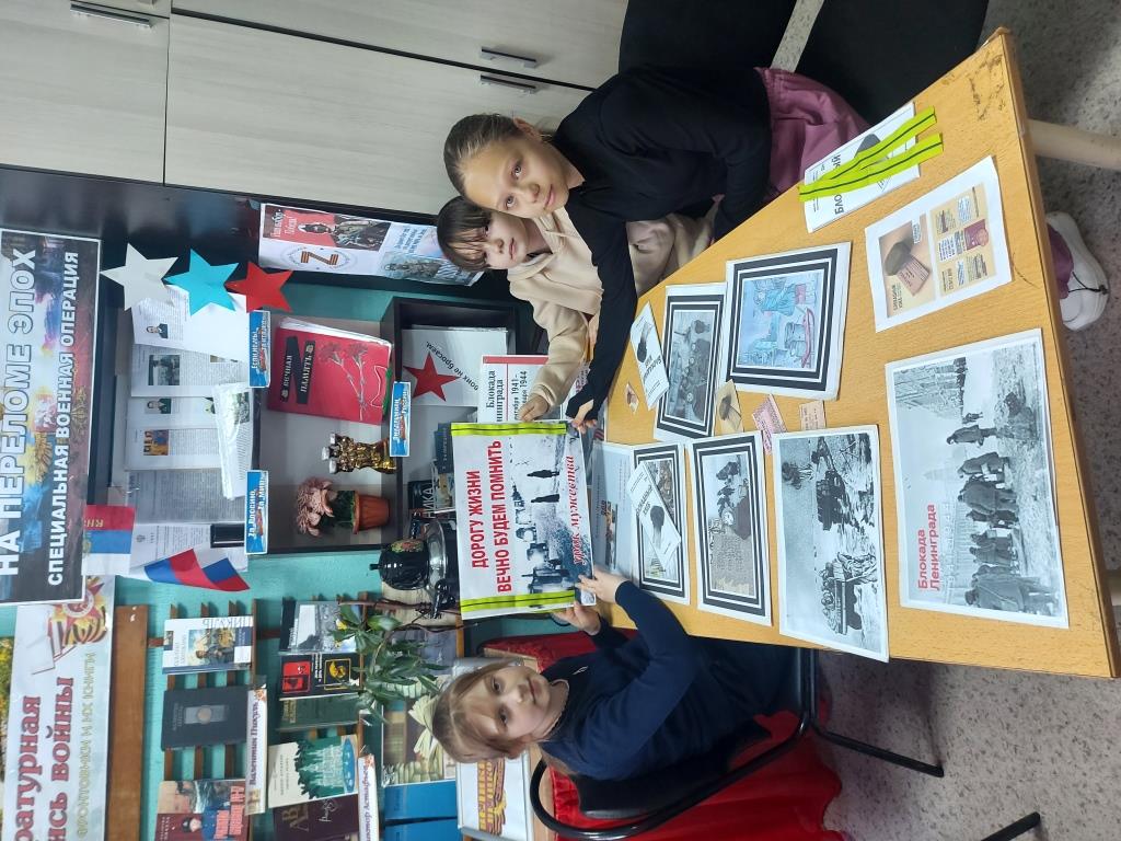 К этой исторической дате заведующая Солдатской сельской библиотекой Алексеева Е.С. провела библиотечный урок «Блокадный Ленинград», где рассказала ребятам о защите и обороне Ленинграда советскими солдатами, о строительстве спасительной «дороги жизни» через Ладожское озеро, а также историю ленинградской школьницы Тани Савичевой, которая во время блокады вела дневник, содержащий девять страшных строк: каждая строка посвящена смерти одного из близких. Елена Сергеевна провела обзор литературы «Блокадной вечности страницы». В конце мероприятия ребята пришли к выводу, что подвиг детей блокады учит мужеству, стойкости и безграничной любви к Родине.