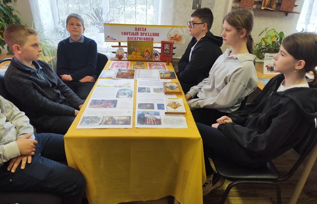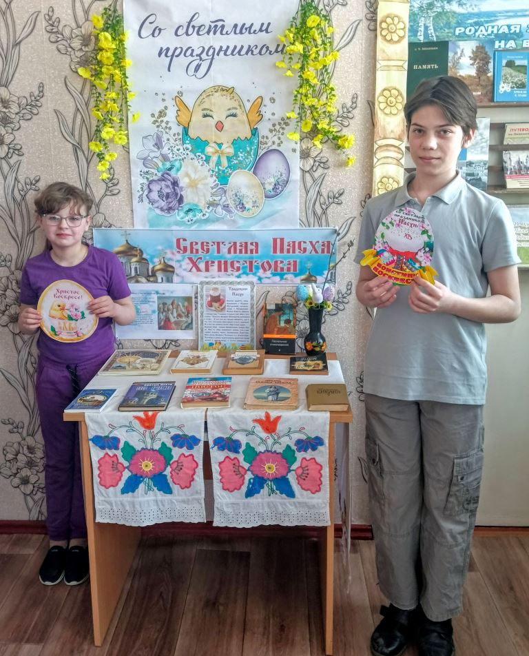 Повсюду благовест гудит! Из всех церквей народ валит. Заря глядит уже с небес… Христос воскрес! Христос воскрес! Пасха – светлый и вдохновляющий праздник, который ежегодно объединяет сотни людей по всему миру. Ароматные куличи, крашеные яйца, весеннее солнце и древние традиции делают Пасху одним из самых замечательных семейных праздников. В Вислополянской сельской библиотеке прошли пасхальные посиделки «И снова Пасха у ворот!». Была оформлена книжная выставка-совет «К пасхальному столу». В ходе мероприятия дети познакомились с историей праздника, народными поверьями, с пасхальными традициями и обычаями наших предков, сохранившихся до наших дней. Ребята узнали, что традиционный подарок на Пасху – крашеное яйцо, оно является символом зарождения новой жизни, поговорили о том, почему именно к этому празднику раскрашивают яйца и пекут куличи. Юные гости нарисовали пасхальные рисунки, а затем угостились куличом, крашеными яйцами и сладостями. Мероприятие получилось тёплым, душевным и оставило у подростков приятные впечатления и радостное настроение.