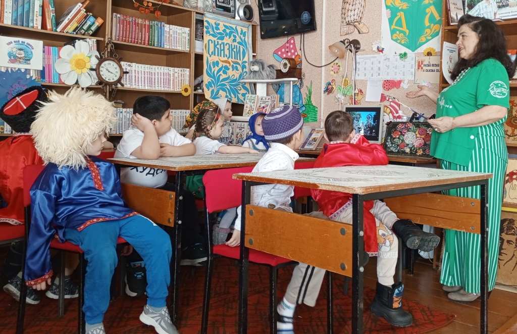 В Казинской сельской библиотеке прошёл час громких чтений «Золотая россыпь сказок народов России». В начале праздника ребята познакомились с книжной выставкой «Неделя детской книги», которая состоит из трех разделов: «Народы дружат с книгами», «Сказки народов России», «По страницам любимых книг». Далее все участники отправились в путешествие по сказкам народов России, а затем познакомились с историей, национальных костюмов адыгейцев, дагестанцев, русских, якутов, башкиров и бурятов.