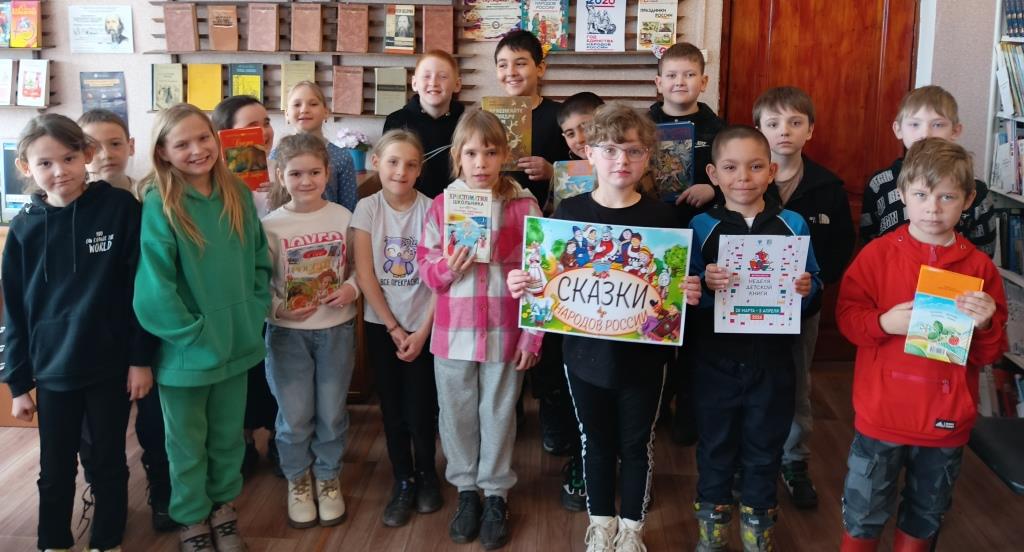 Это Книжкина неделя Пролетит по всей стране, Как приветствие апреля, Как приветствие Весне. С 28 марта по 5 апреля 2026 года проходила ежегодная Всероссийская Неделя детской книги – крупнейшее мероприятие по продвижению детской книги и старейшая отечественная просветительская акция, зародившаяся в далёком военном 1943 году. К акции традиционно присоединились и библиотеки Тербунского муниципального округа. В рамках Недели детской книги и в честь Года единства народов России в детском отделе Тербунской ЦБС прошёл яркий и увлекательный литературный праздник «Весёлое книжное путешествие: народы России вместе». Мероприятие было посвящено многообразию культур и традиций народов нашей страны, а также дружбе и взаимопониманию между ними. В празднике приняли участие дети разных возрастов – от младших школьников до подростков. Ведущая познакомила ребят с интересными фактами о народах России, с их сказками, легендами и традициями. Юные гости с удовольствием слушали рассказы о дружбе, взаимопомощи и уважении к культуре каждого народа. Воспитанники клуба «Сказочник» показали кавказскую сказку «Два брата», которая учит тому, что родственные связи и настоящая преданность важнее материальных благ и ложной дружбы. Особое внимание было уделено чтению стихотворений на разных языках, звучали песни и загадки, связанные с культурным наследием России. Праздник помог подросткам лучше понять и почувствовать богатство и красоту многонациональной России.
